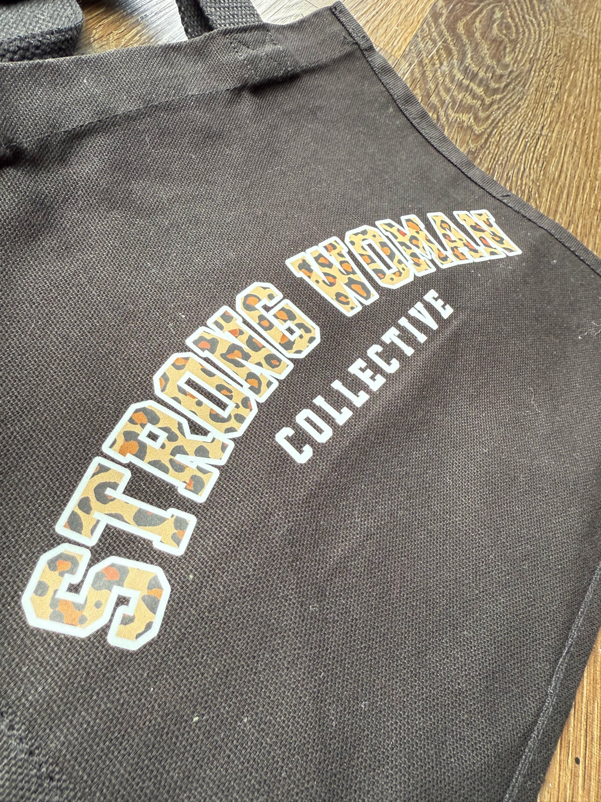 Black bag - leopard font comes in three colour options for the outline of the logo